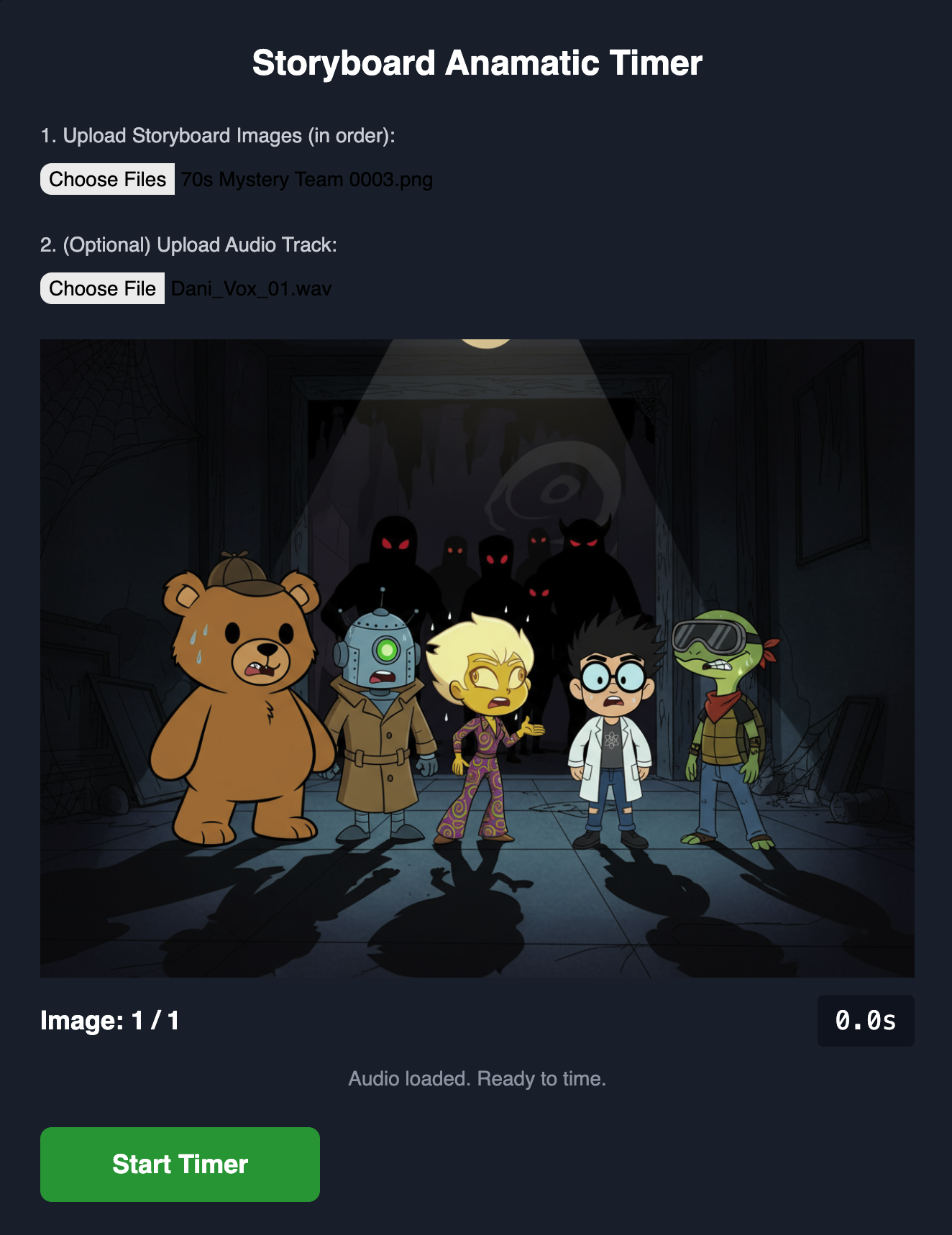 Anamatic (add images and audio, click the button to flip to the next image in sequence with the audio to create an anamatic. the Anamatic will be in 16:9 aspect ratio regardless of your images size, they will be squished to 16:9 in the video output)