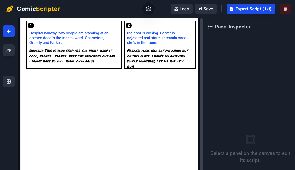 - 02 Script: Draft your story with a dedicated script editor; export to .txt.